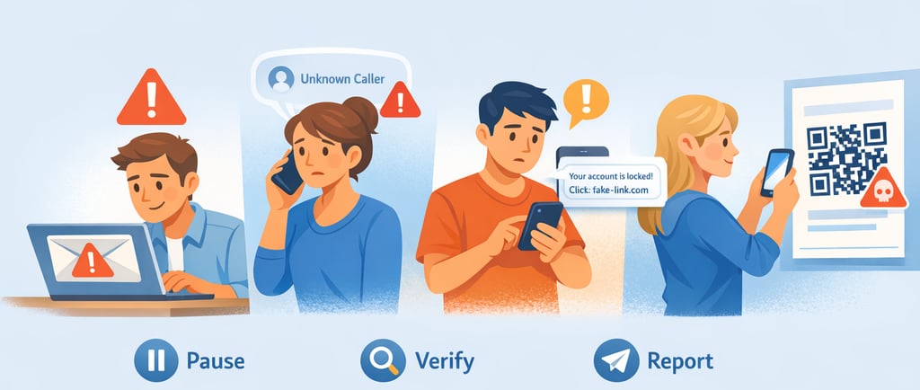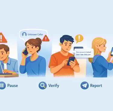 Slow down when something feels urgent, scary, or “too good to be true." Most scams rely on you acting fast instead of thinking first.